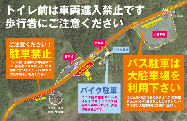 自動車・バイクの駐車に対して500円/台の環境協力金をお願いしています。大型バスの駐車に対しては1,000円/台をお願いいたします