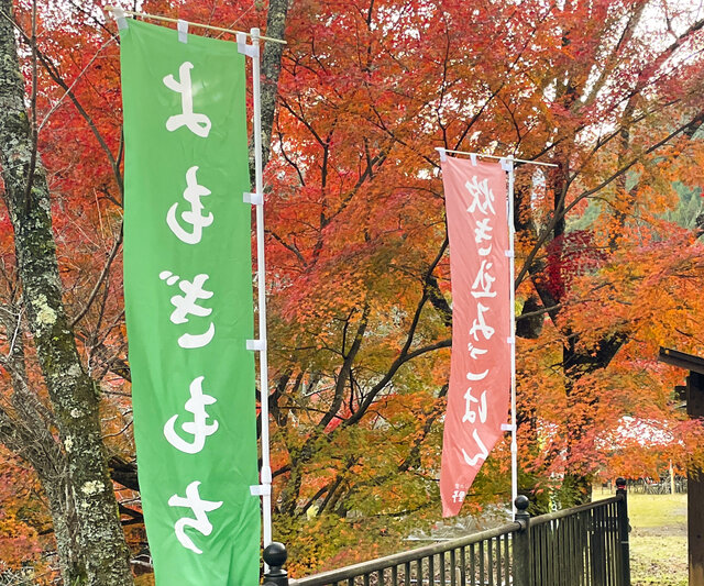 11月15日土曜日。心地よい秋晴れのもと、もみじ祭りが始まりました。大野ダムもみじ祭り明日の16日まで。たくさんの皆様のお越しをお待ちしております